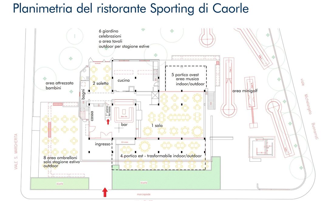 ll ristorante Sporting di Caorle offre numerose configurazioni per organizzare al meglio il tuo evento a un passo dal centro di Caorle e dalla spiaggia e il mare. Numerose le soluzioni e gli spazi interconnessi in cui realizzare un party, un gala, un' evento in famiglia, un matrimonio o una cena di sicuro successo.